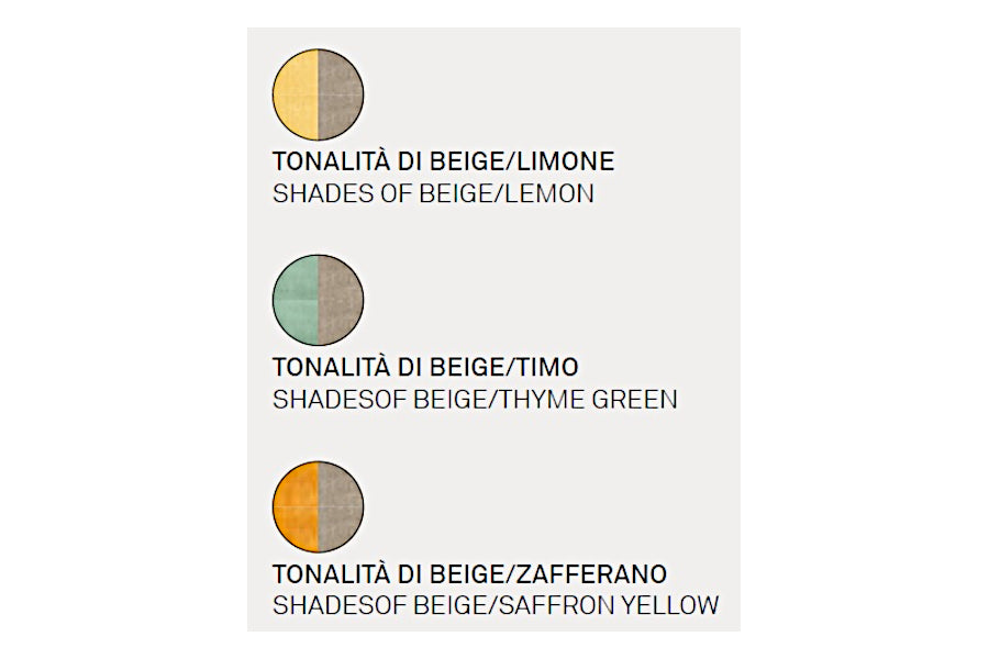 Available in shades of beige / lemon, shades of beige / thyme green, or shades of beige / saffron yellow.